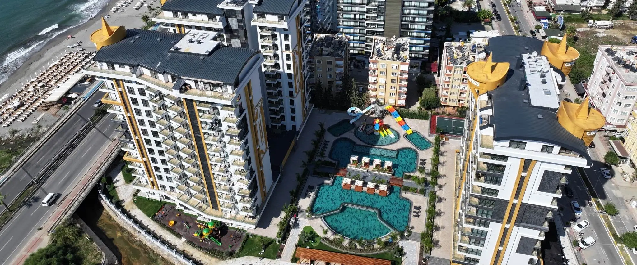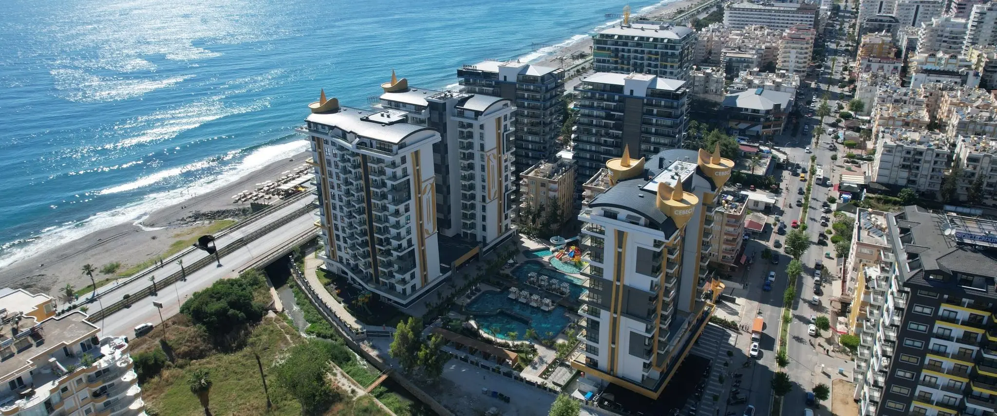 Alanya, Mahmutlar'da denize sıfır konumlandırılmış bir lüks konut projesidir. 10.000 m² alan üzerinde 7500 m² yeşil alan, 2500 m² bina oturum alanları, 1200 m² sosyal alanlardan oluşmaktadır. Mükemmel işçilik ve malzeme kalitesinde yapılmış 15'er katlı 3 bloktan oluşan bir konut kompleksidir.